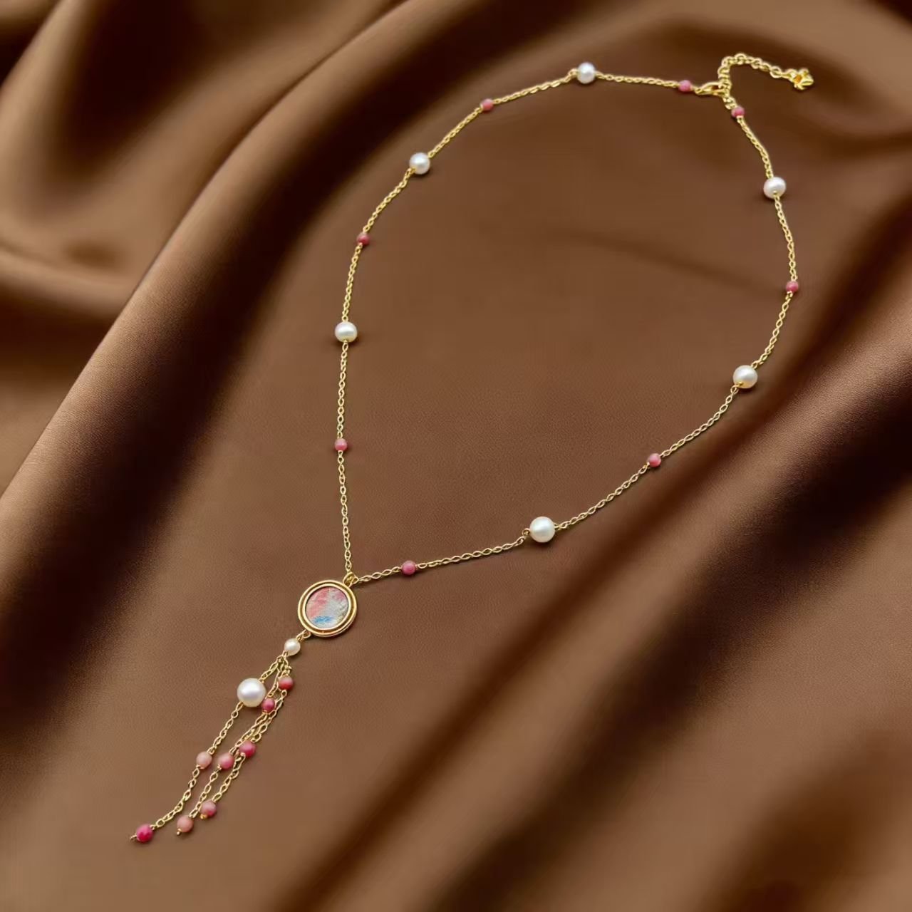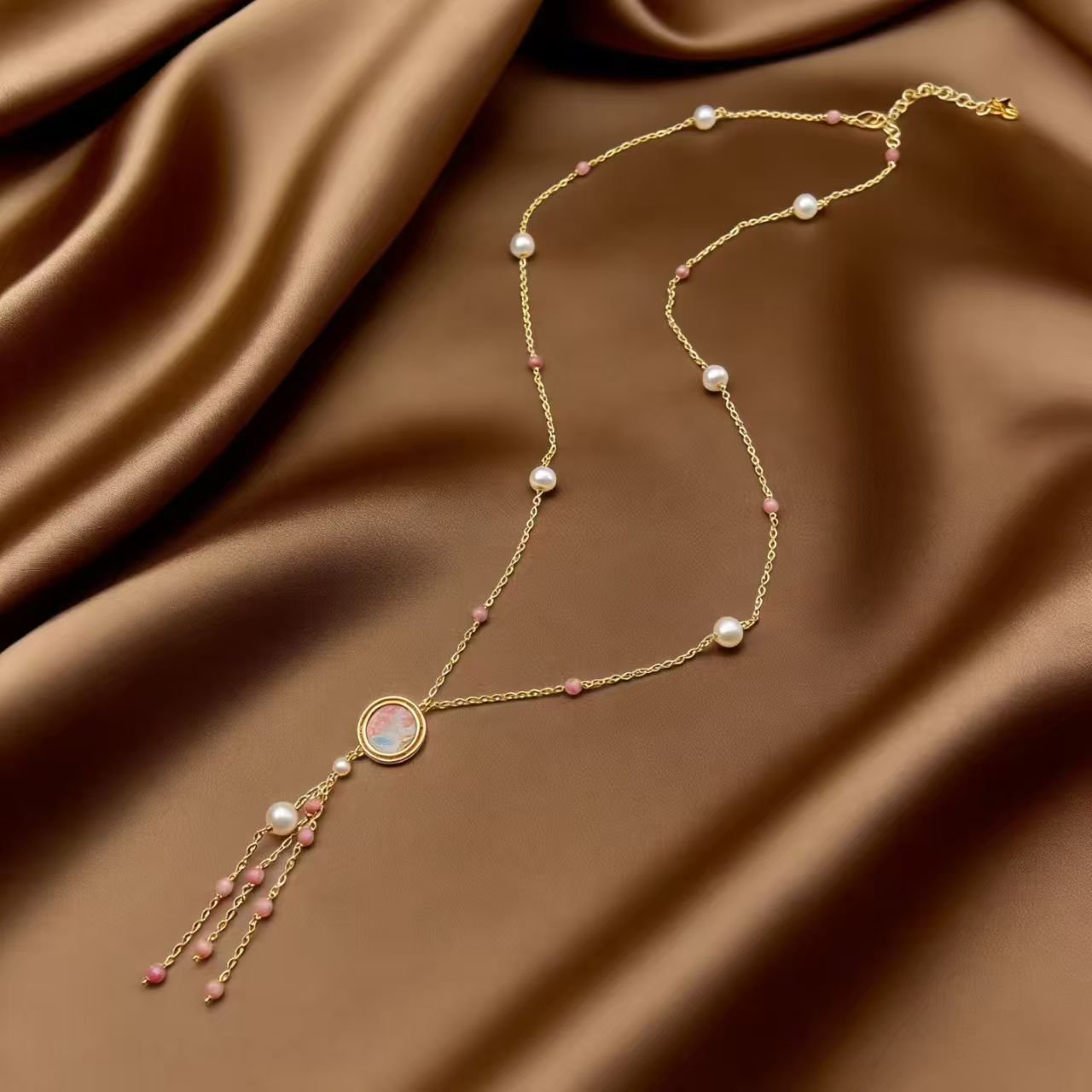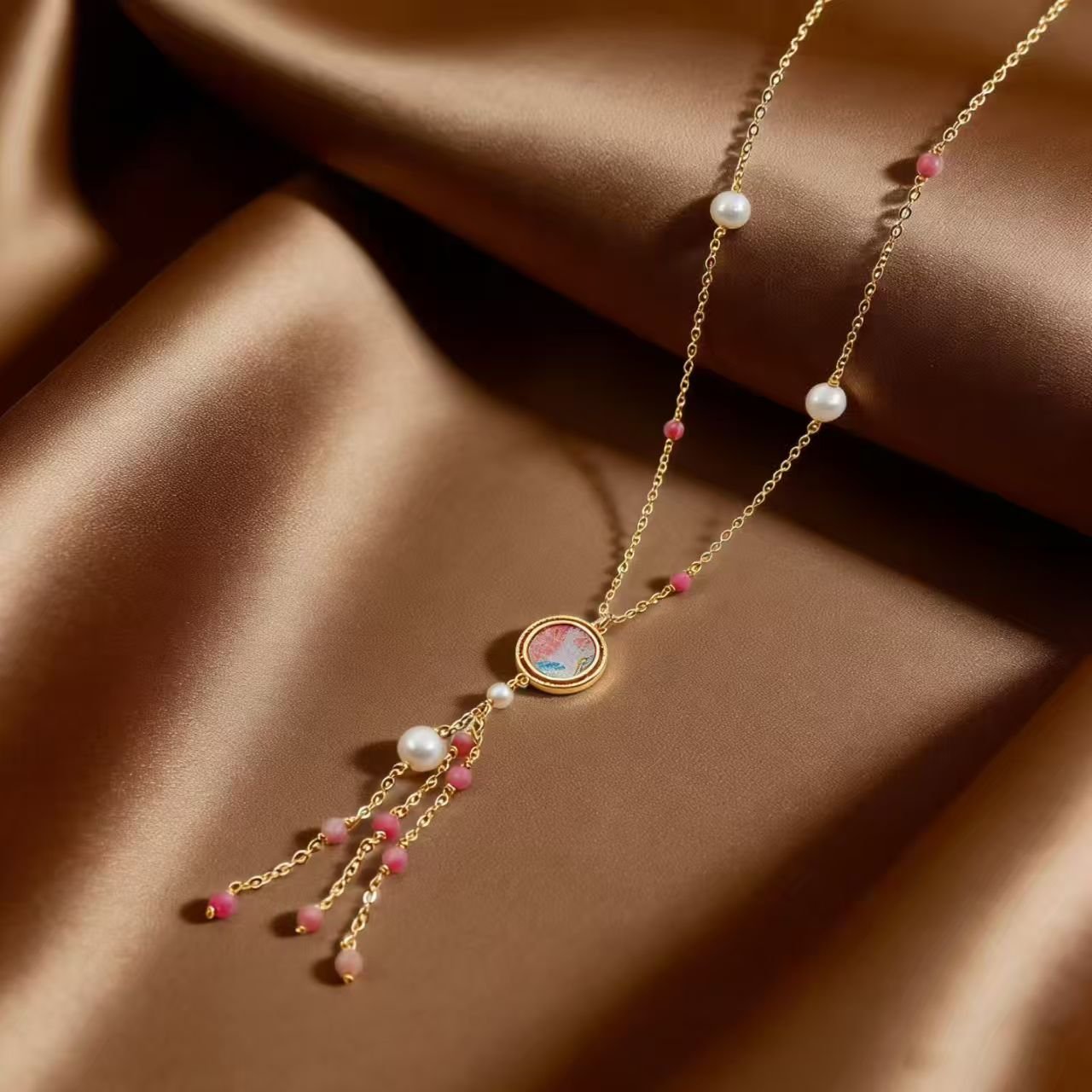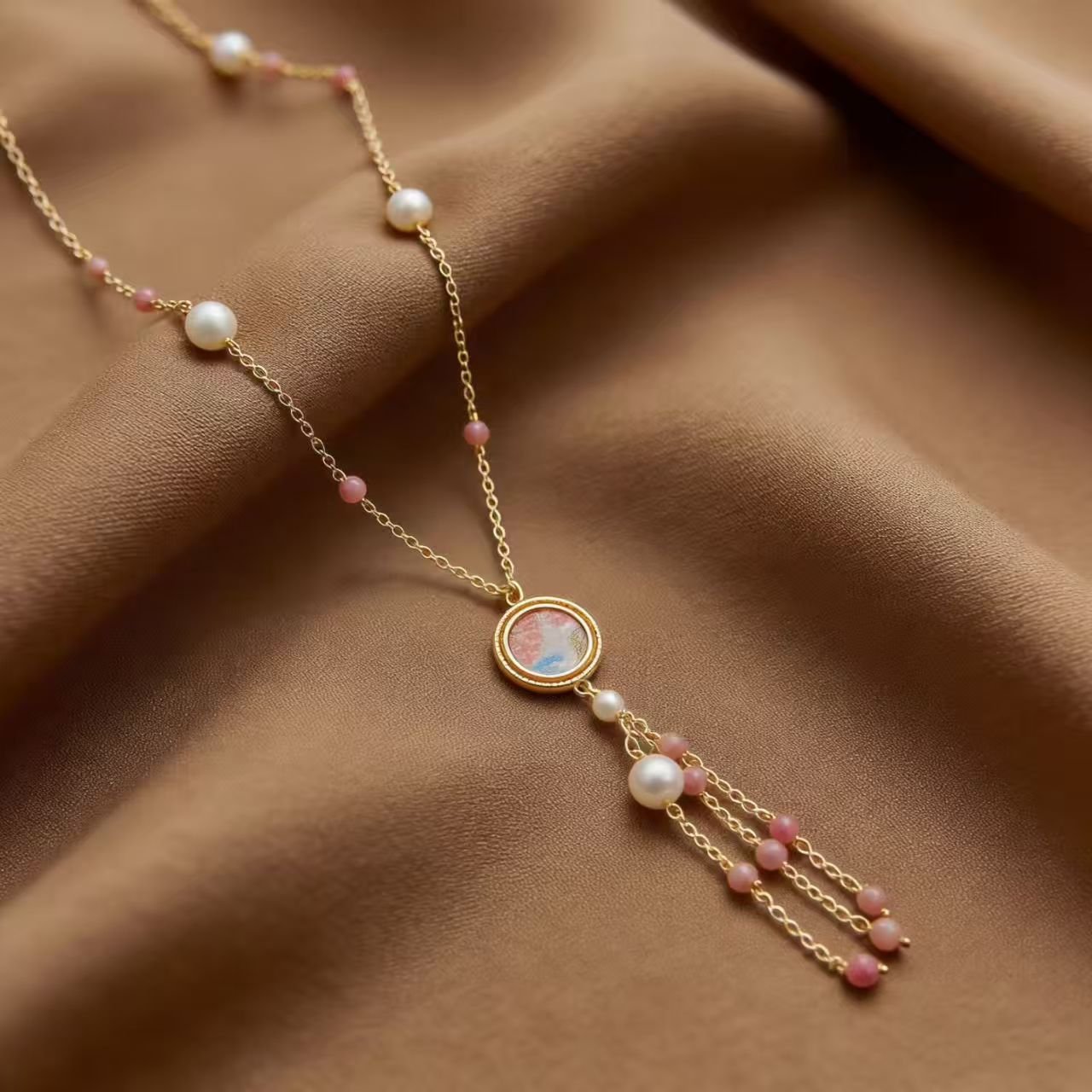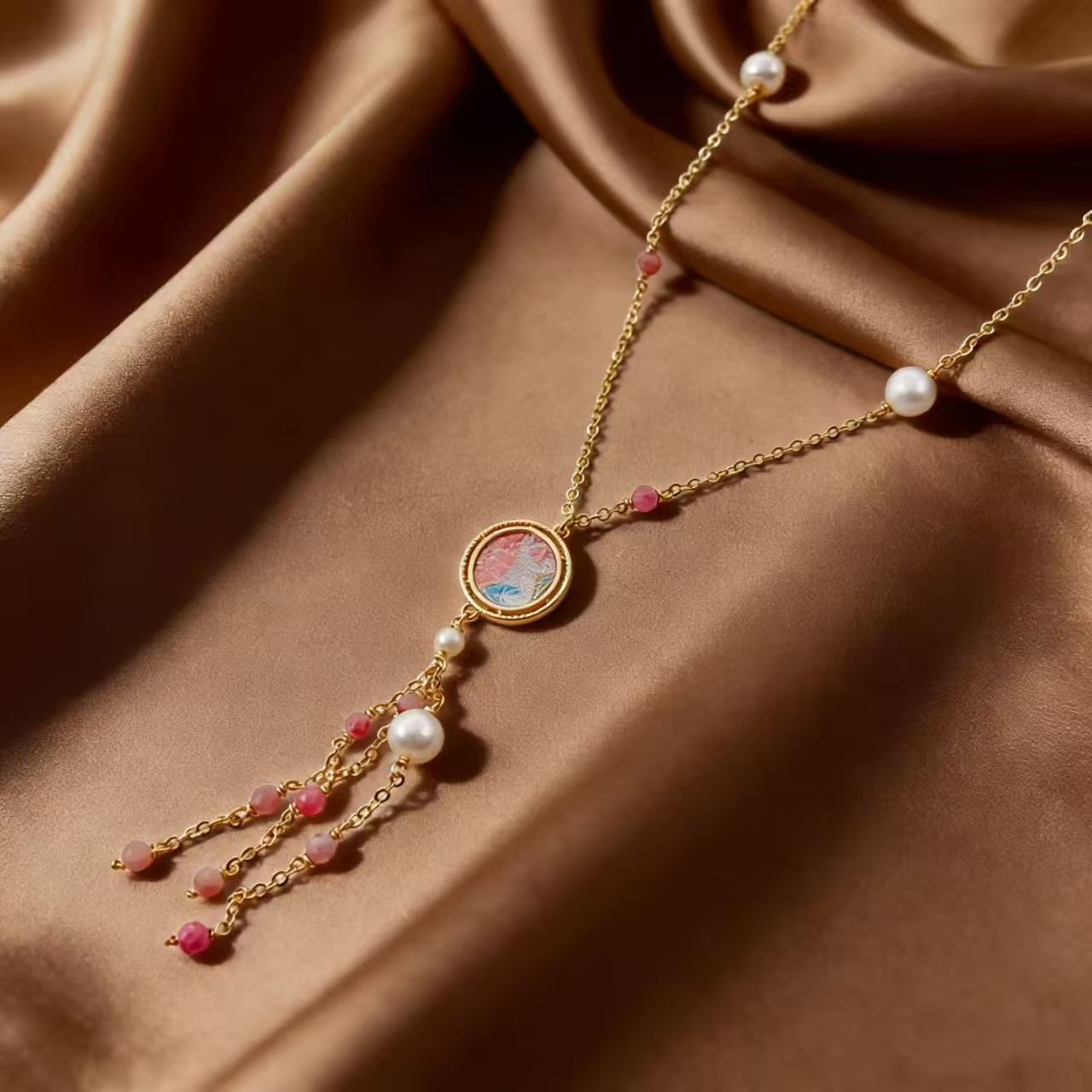 Song Brocade: A precious traditional Chinese fabric woven with delicate cloud patterns, embodying ancient craftsmanship. Soft, breathable and colorfast, it endows the necklace with rich cultural heritage.