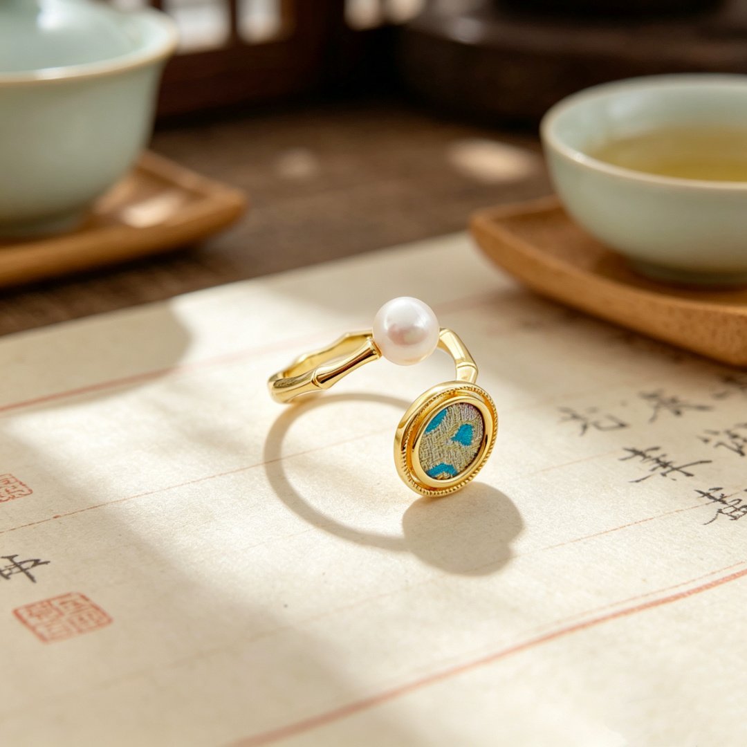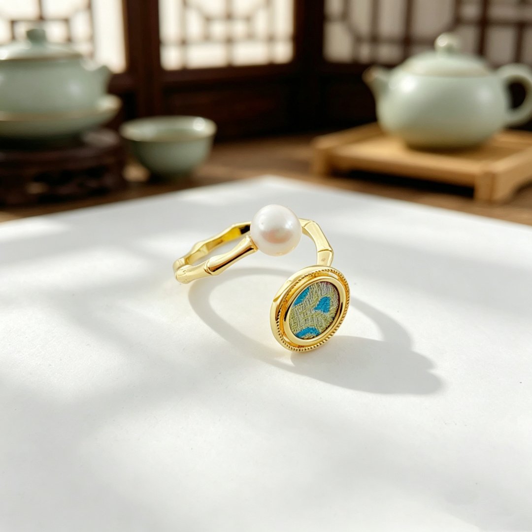 005 Green Lotus Leaf Pearl RingAvailability: 99247 in stock