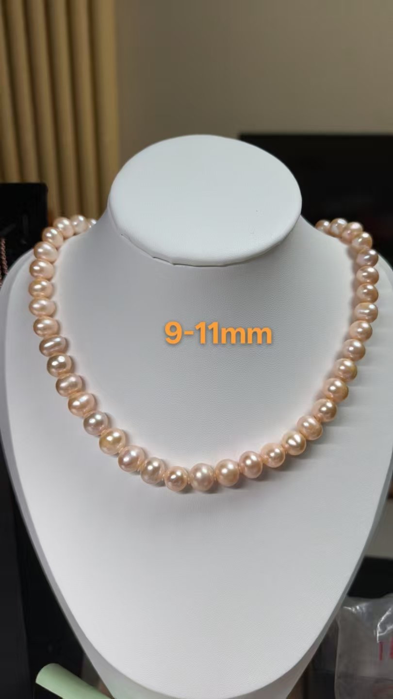 freshwater edison pearl necklace, cold white pearl luster,9 11mmFreshwater Edison pearl necklace, Chinese red, champagne color,9-11mm
